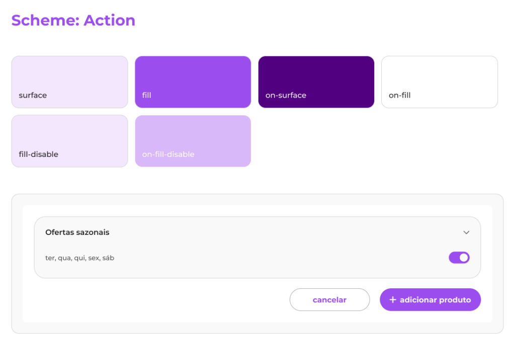 Dividimos os tokens do DS em Tokens Primitivos e Tokens de Marca, seguindo uma cascata de tokenização. A princípio, está funcionando, mas já percebemos que ainda precisaremos trazer mais robustez. Mas o pulo do gato está nos tokens de marca e nos “schemes” que montamos para adaptar as variáveis para cada marca.